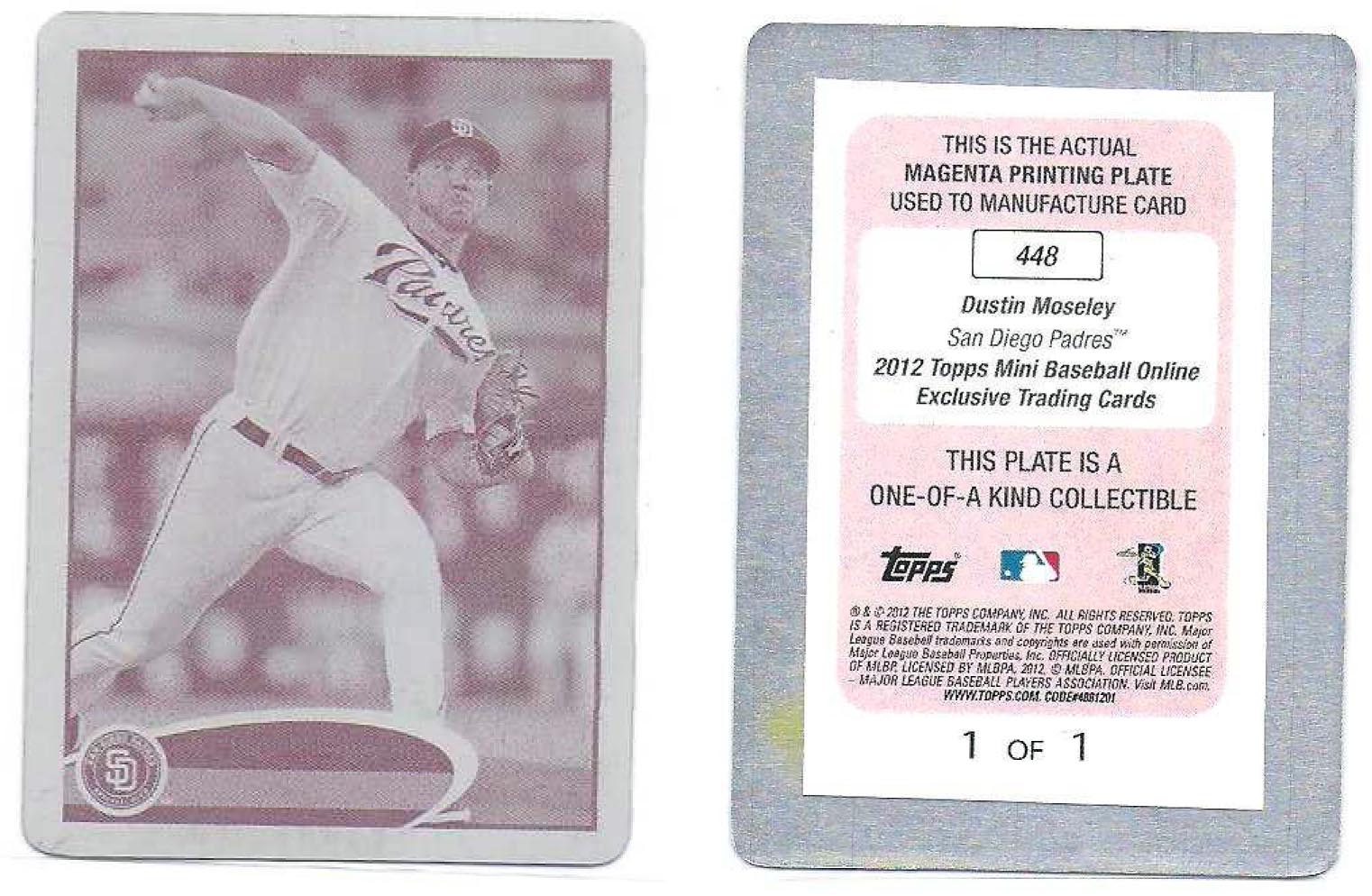 The other plate belongs to Dustin Moseley and his 2012 Topps Mini #448. Even though he didn't do much for the Pads, I like the Moseley card, since it was from last year's offerings. After being non-tendered by the Yankees, he signed a one-year contract to pitch in the friendly environs of Petco Park. He disclocated his left shoulder after getting a base hit in July, ending his season with a 3-10 record and 3.30 ERA (a career best) in 120 innings. Making matters worse, he made only one start in 2012, before clearing outright waivers.